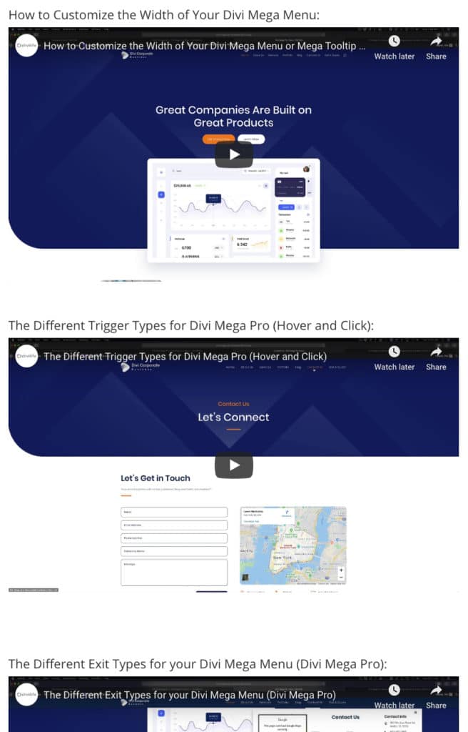 We also just published 10 new tutorials for Divi Mega Pro that instruct on the specific features of the plugin. We will also be adding more as well. This is a pre-cursor to the new Divi Life Documentation center that will be released soon with new tutorials for all products and a much easier way to navigate through them to find what you need.