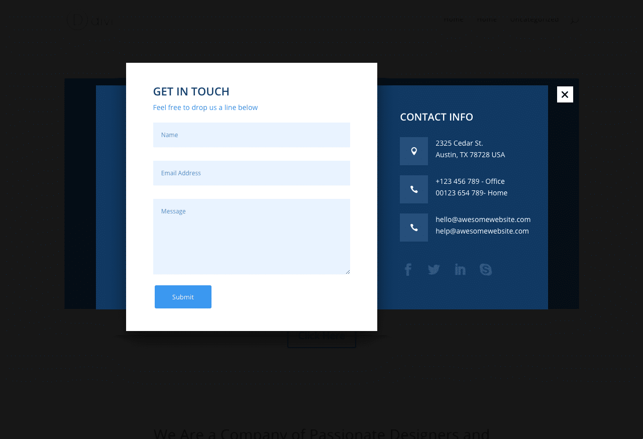 Contact Divi Popup Template Style 1: