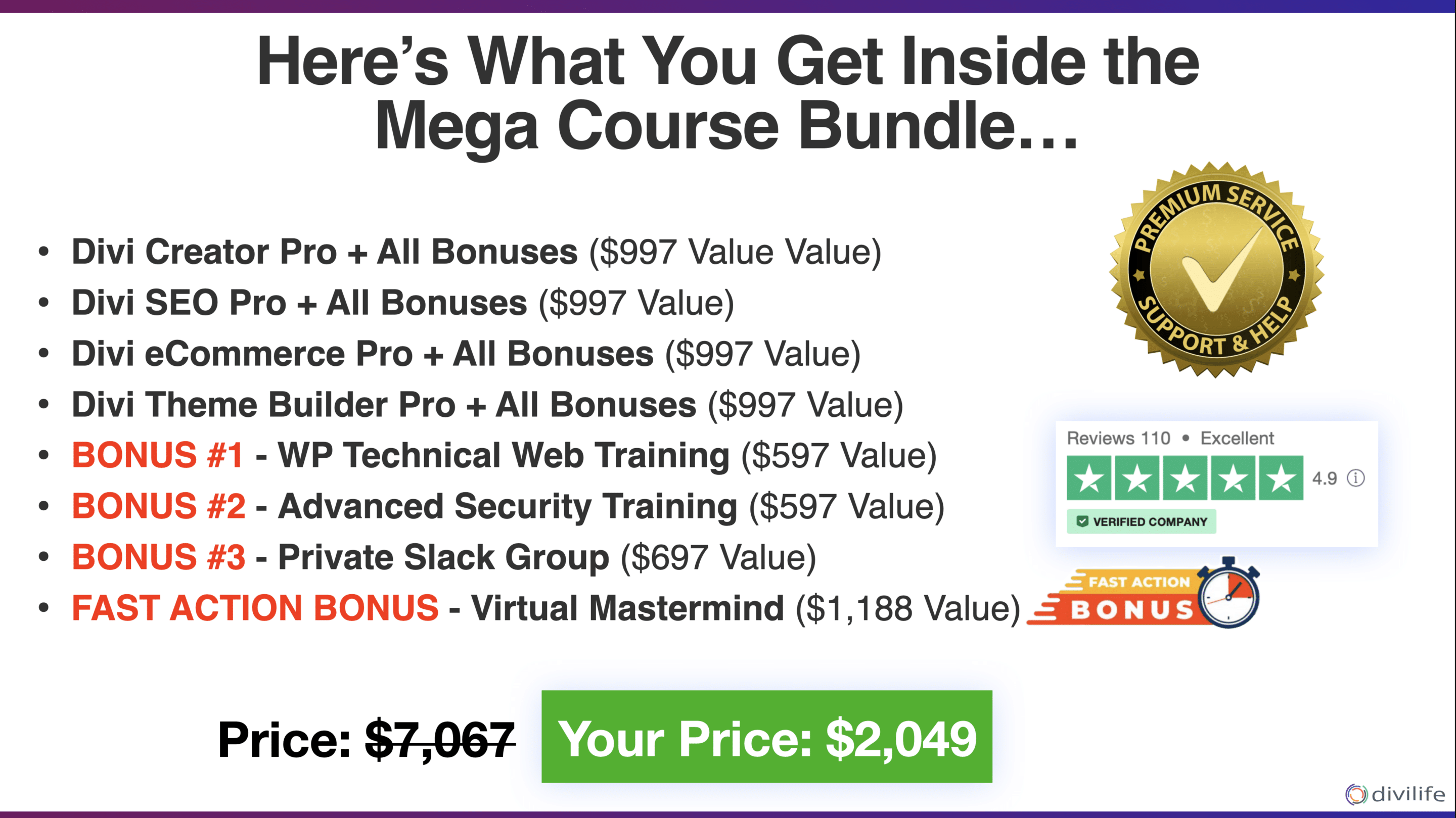 20% Off Storewide Summer Sale Divi Speed Pro Course Student Special! (Watch the Video Above First) Bringing Back the Course Bundle (Exclusively For Speed Course Students!) Mega Course Bundle 1 Time Payment (Lifetime Access) - $2,049 Payment Plans Mega Course Bundle - $724/month for 3 Months Mega Course Bundle - $369/month for 6 Months Mega Course Bundle - $250/month for 9 Months Individual Courses — 20% Off Divi Creator Pro - $798 (20% Off!) Divi Creator Pro - $220/month for 4 months Divi SEO Pro - $798 (30% Off!) Divi SEO Pro - $220/month for 4 months Divi eCommerce Pro - $798 (20% Off!) Divi eCommerce - $220/month for 4 months Divi Theme Builder Pro - $798 (20% Off!) Theme Builder Pro - $220/month for 4 months
