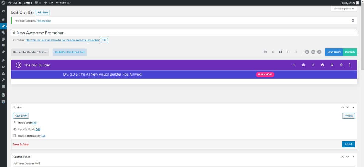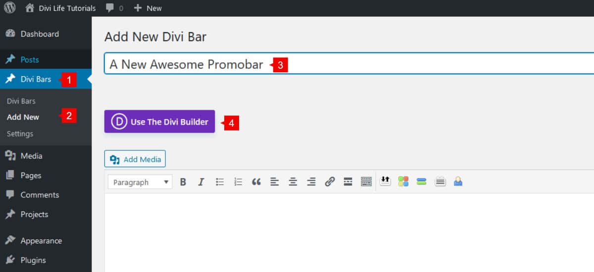 Step 3: Adding a new Divi Bars post