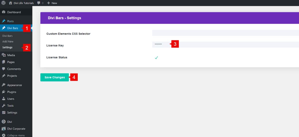 Once Divi Bars is installed, you will need to activate the license key.