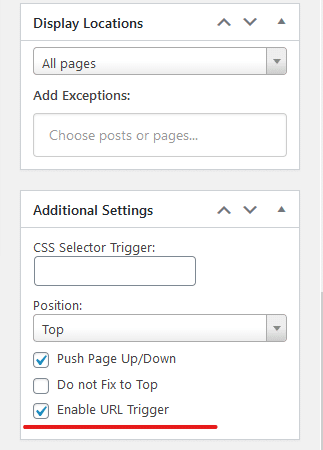 3. If the Divi Bar is not triggering in the module, please Enable URL trigger in additional settings: