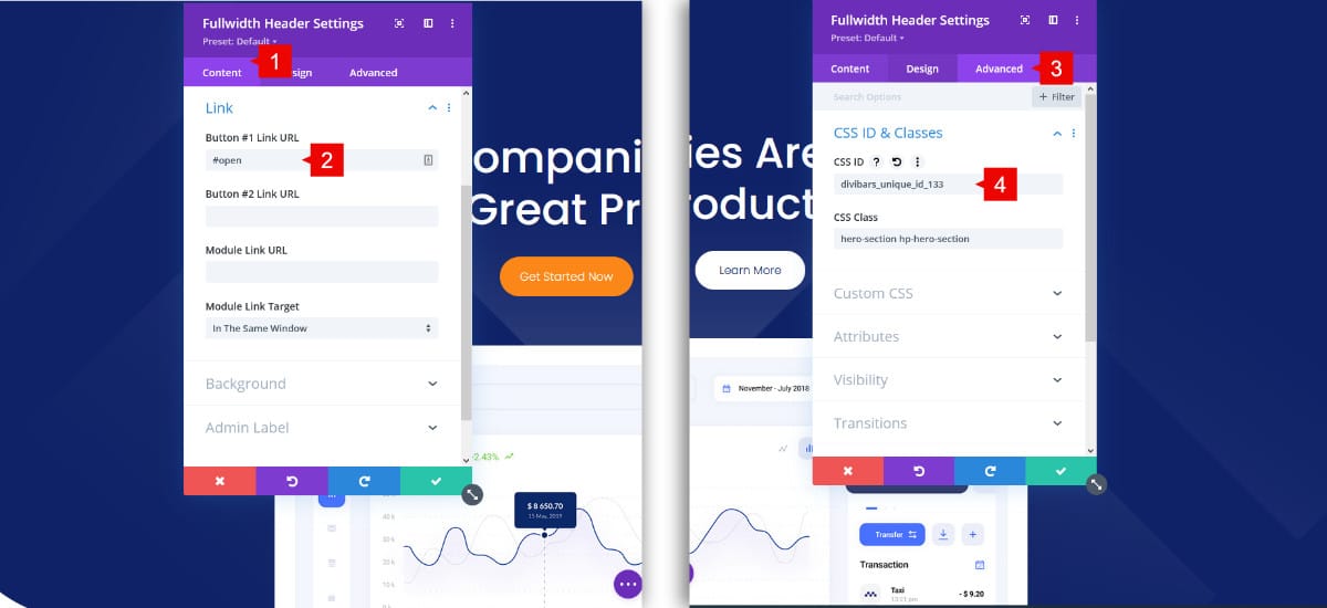 3. Go to the advanced tab > CSS ID & Class > CSS ID
