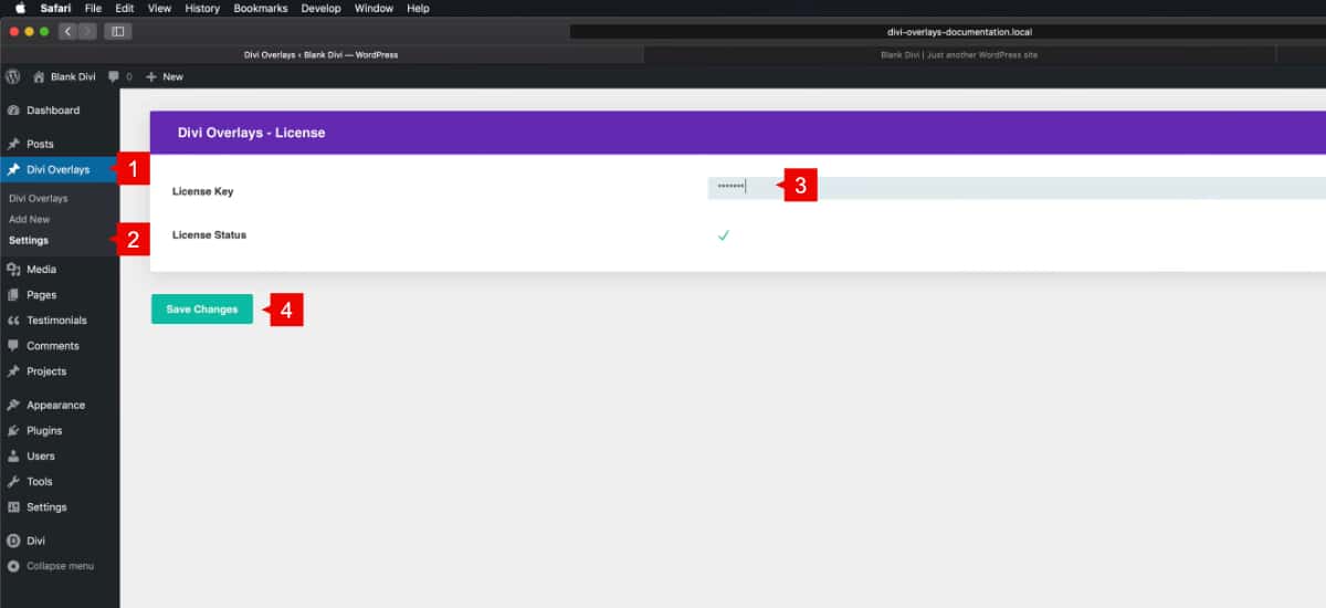 Once Divi Overlays is installed is necessary to activate the license key.