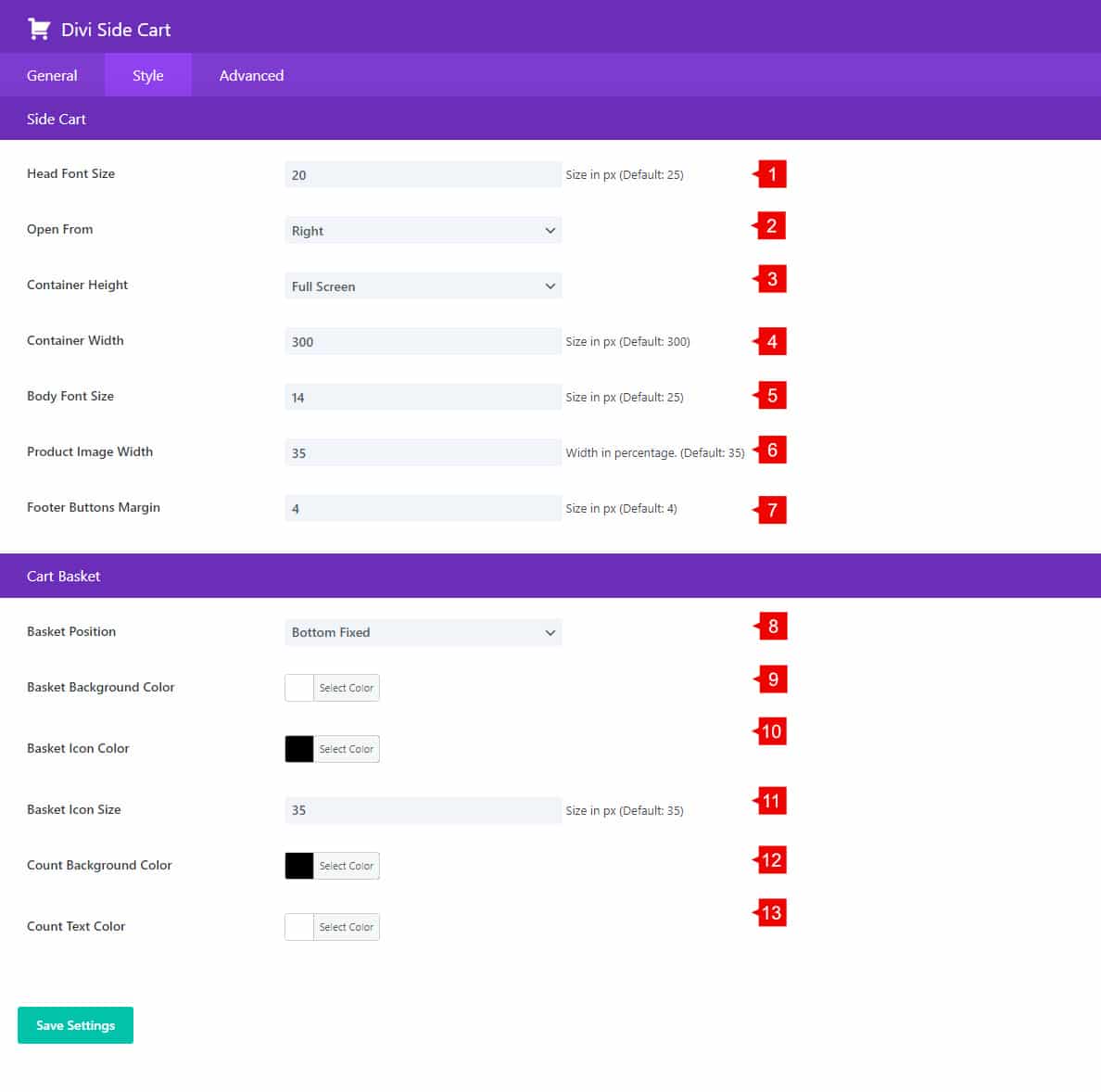 1. Custom CSS: Add custom CSS to your side cart basket.