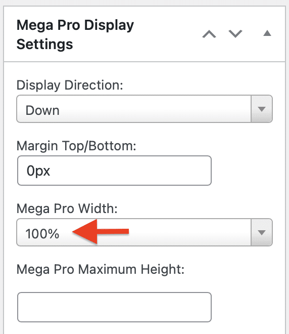 Step One: Change the Mega Pro width to 100% within the Mega Pro Display Settings.