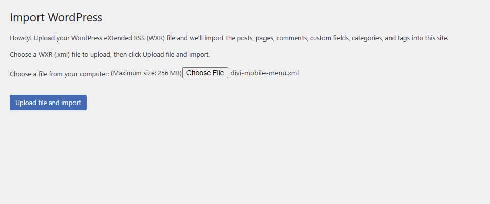 - WP Posts XML import: With this option, you can import all the layouts and all the Divi Mobile Menu settings will be pre-configured for you.