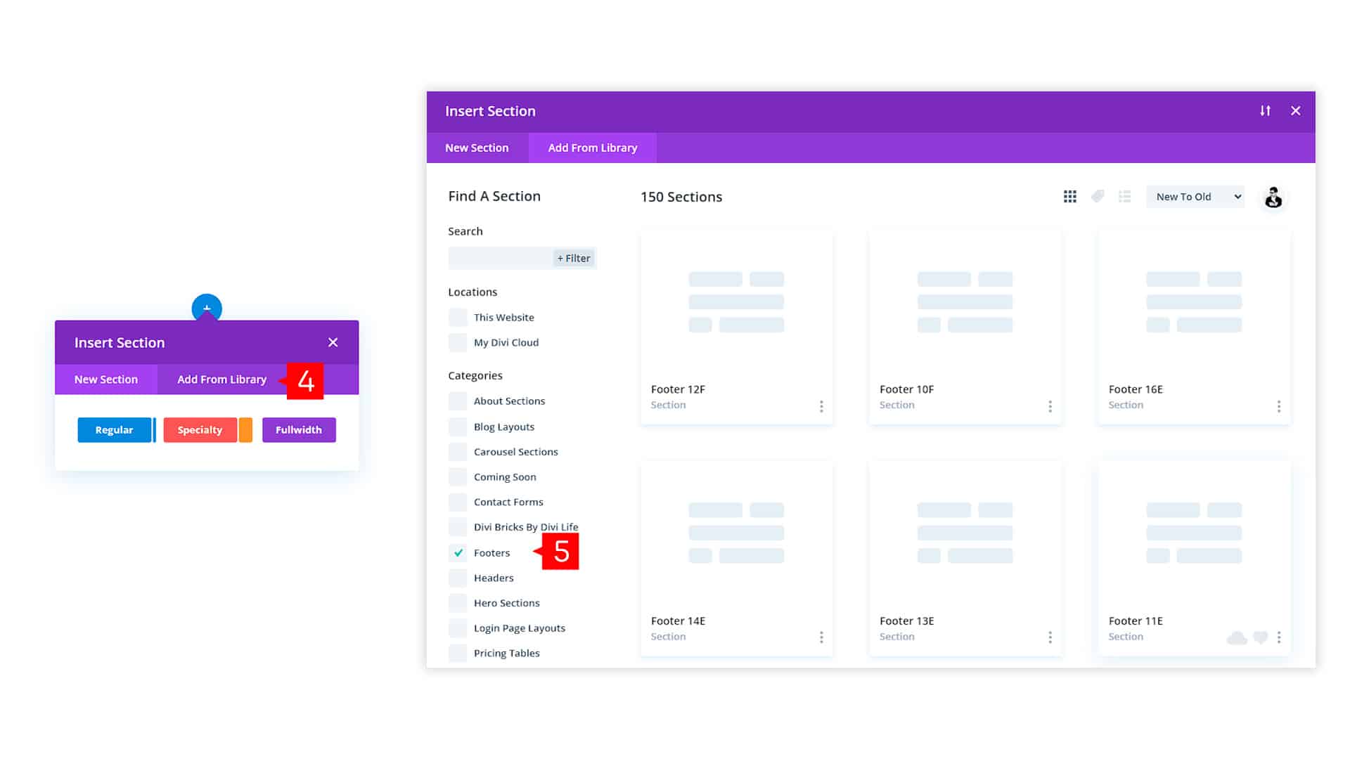 - Filter by Category > Footers > Select the layout you need for the footer