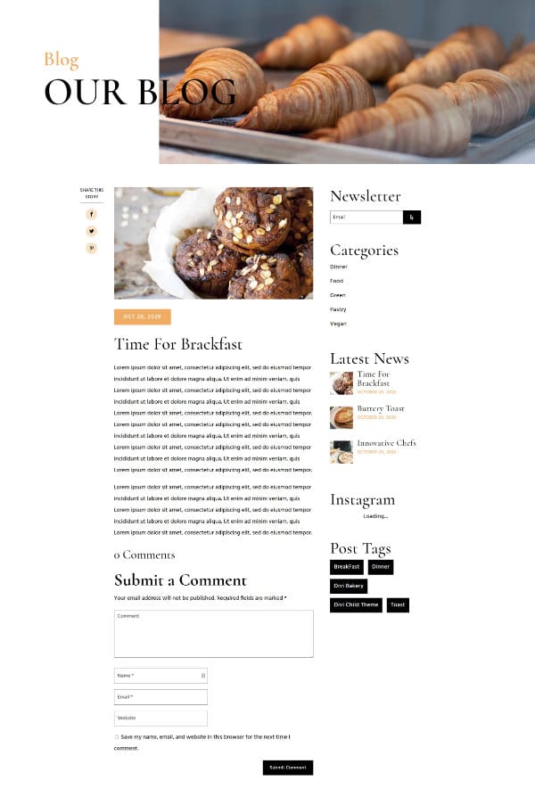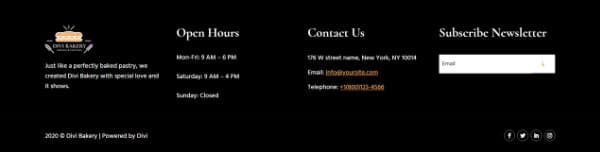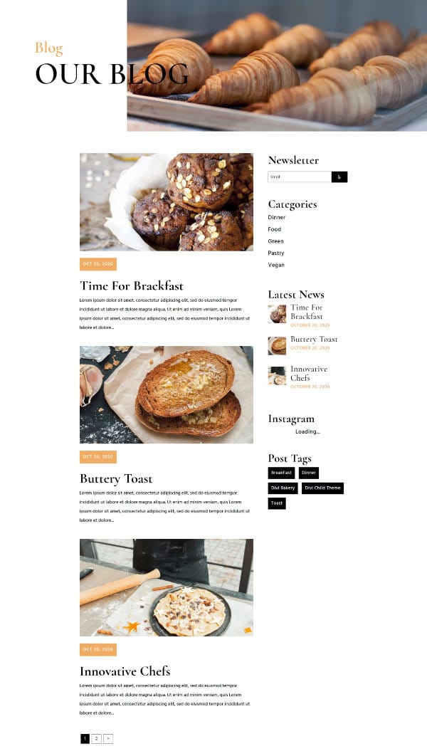 Divi Bakery includes 8 unique pages (Home, About, Blog, Blog-Single-Post, Menu, Location, Contact) and features a modern, clean, and minimalist design.