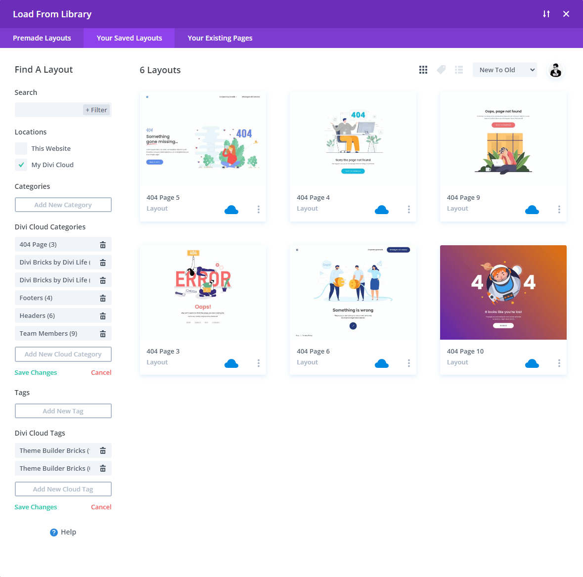 All our layouts were carefully categorized to be easy to use in Divi Cloud, so you can easily navigate in the Divi Cloud Library and filter by categories and tags.