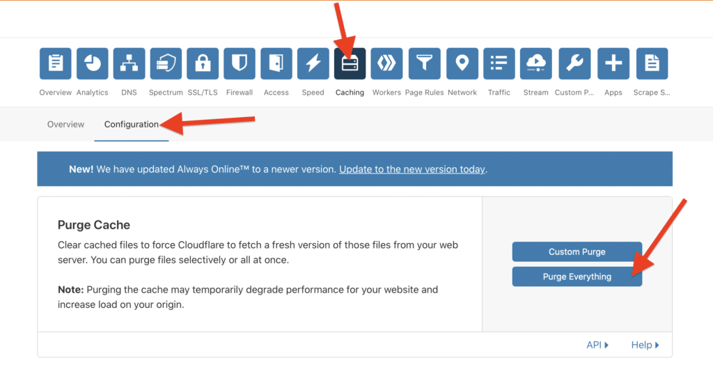 Follow the steps below to clear your Cloudflare cache: