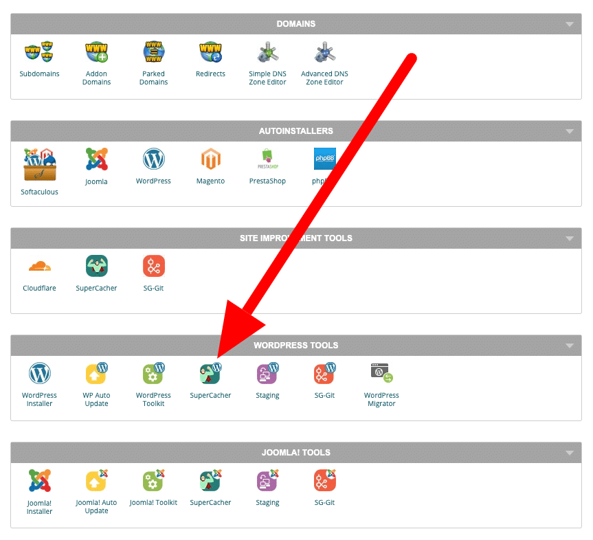 2. Scroll down to the ‘WordPress Tools’ section, & Click on Super Cacher